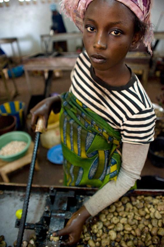 Les photos suivantes ont été prises dans un coopérative de transformation de noix de cajou au Burkina Faso. Elles visent à sensibiliser le public au processus de production de cet aliment et au quotidien de centaines de femmes burkinabées qui oeuvrent dans ce secteur.